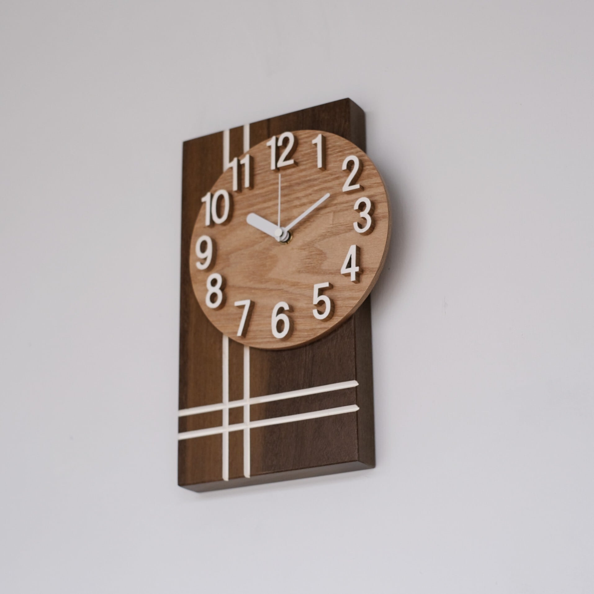 シンプルながらも特徴的なデザインと白いラインがアクセントとなっており、時を刻むだけでなく、壁の装飾としても使用できます。
