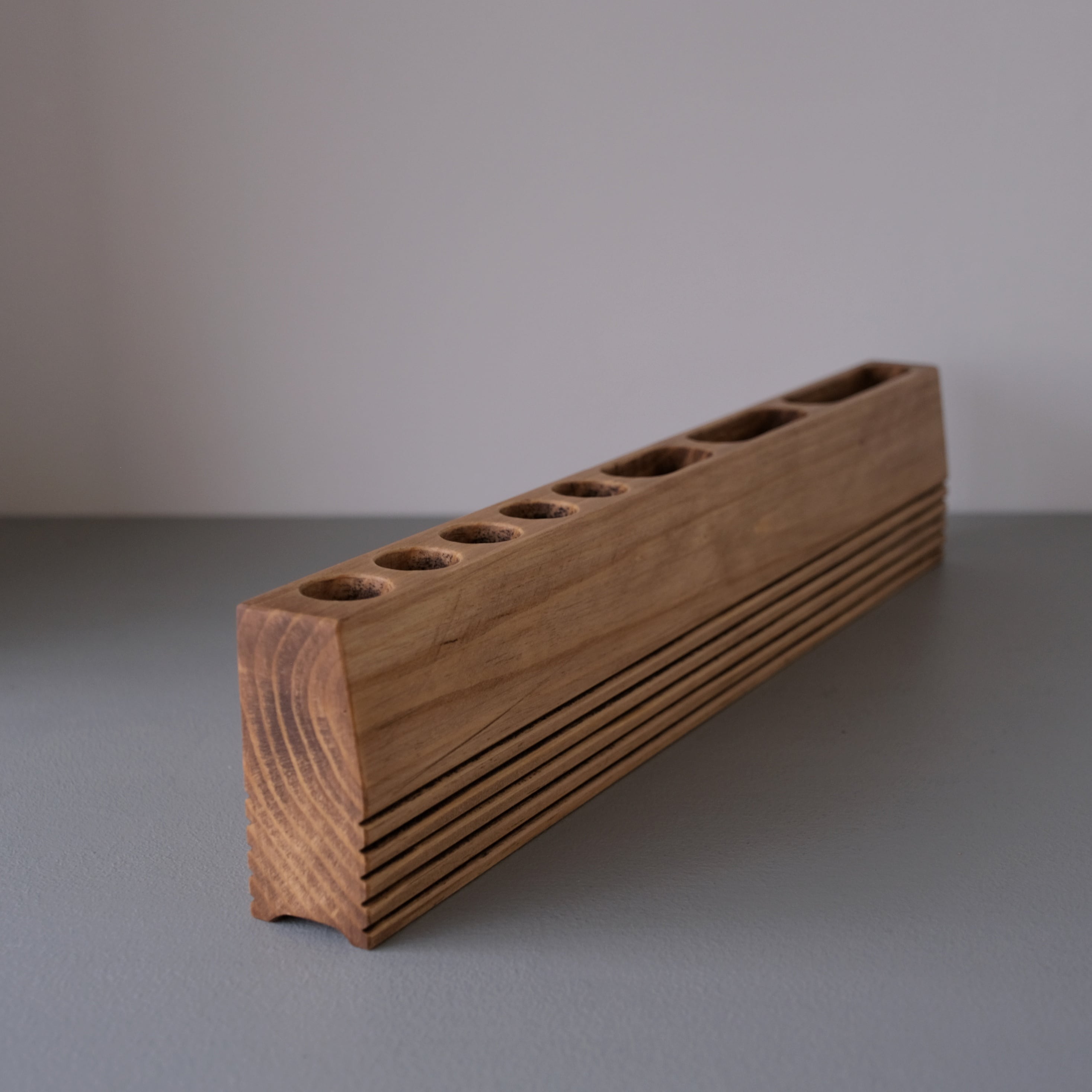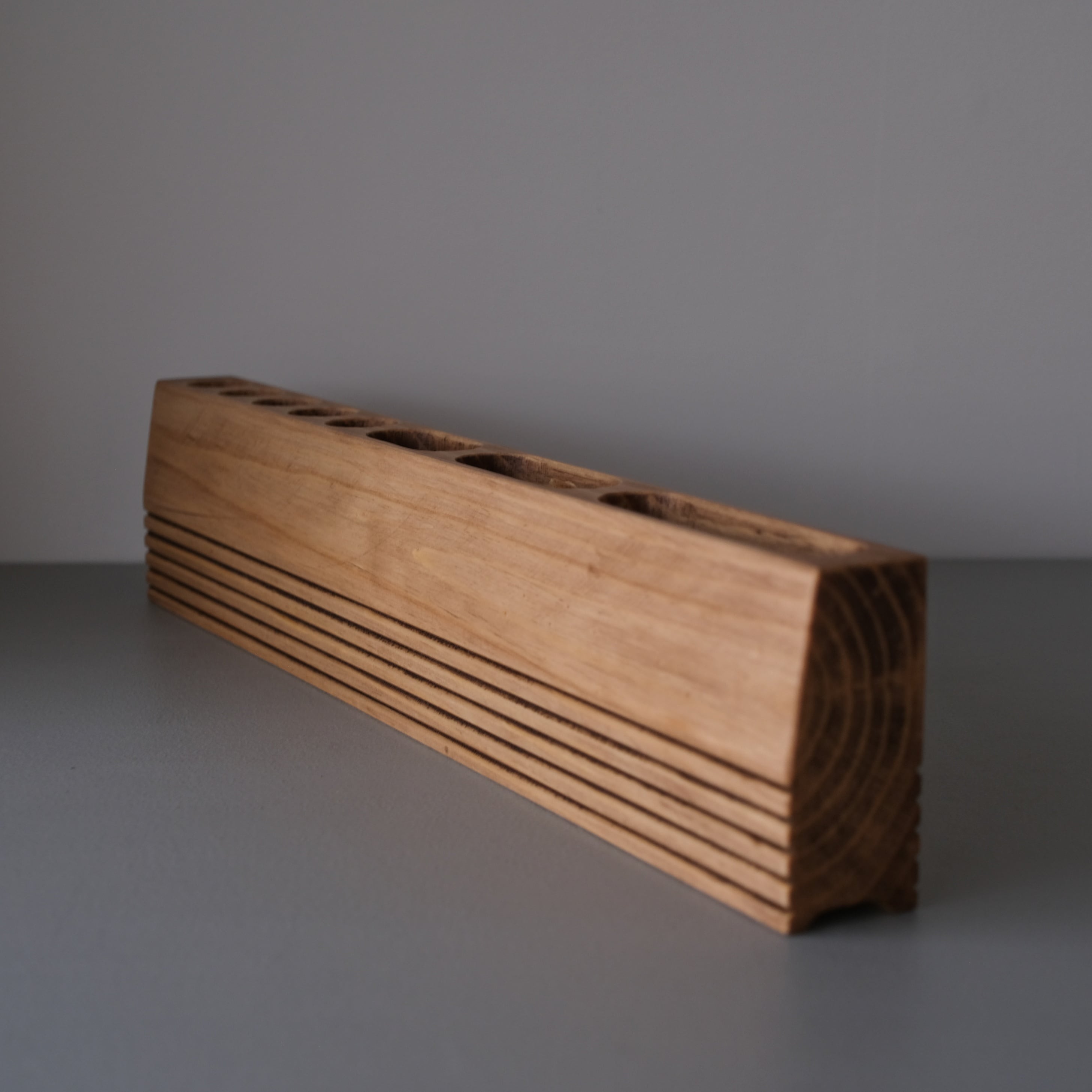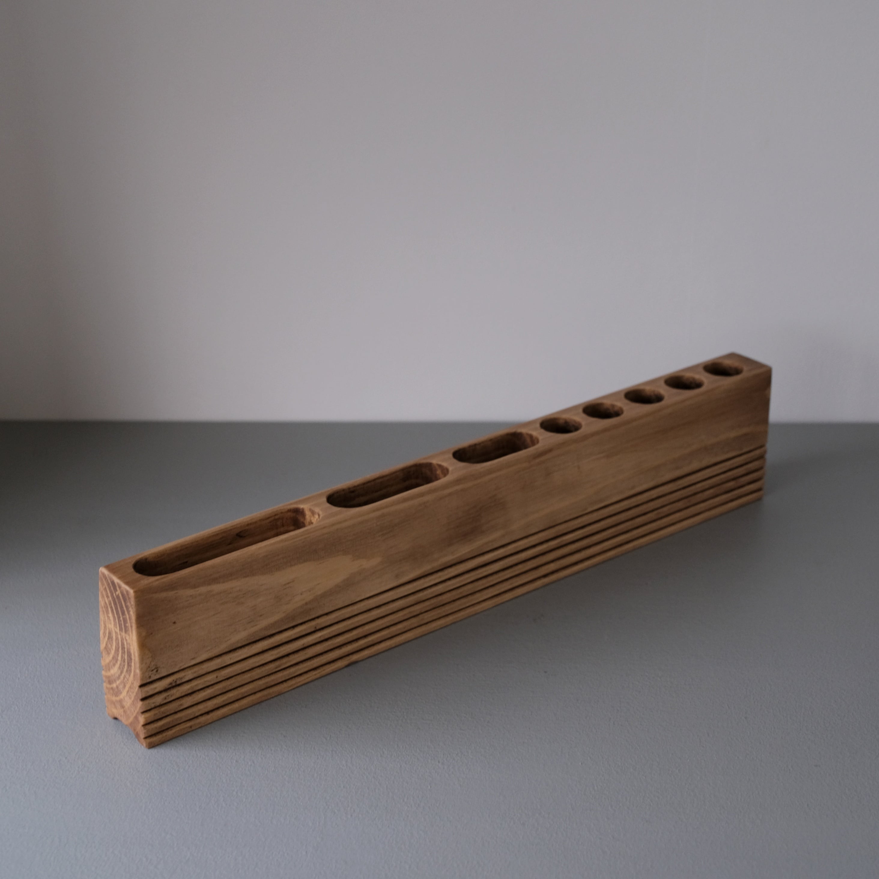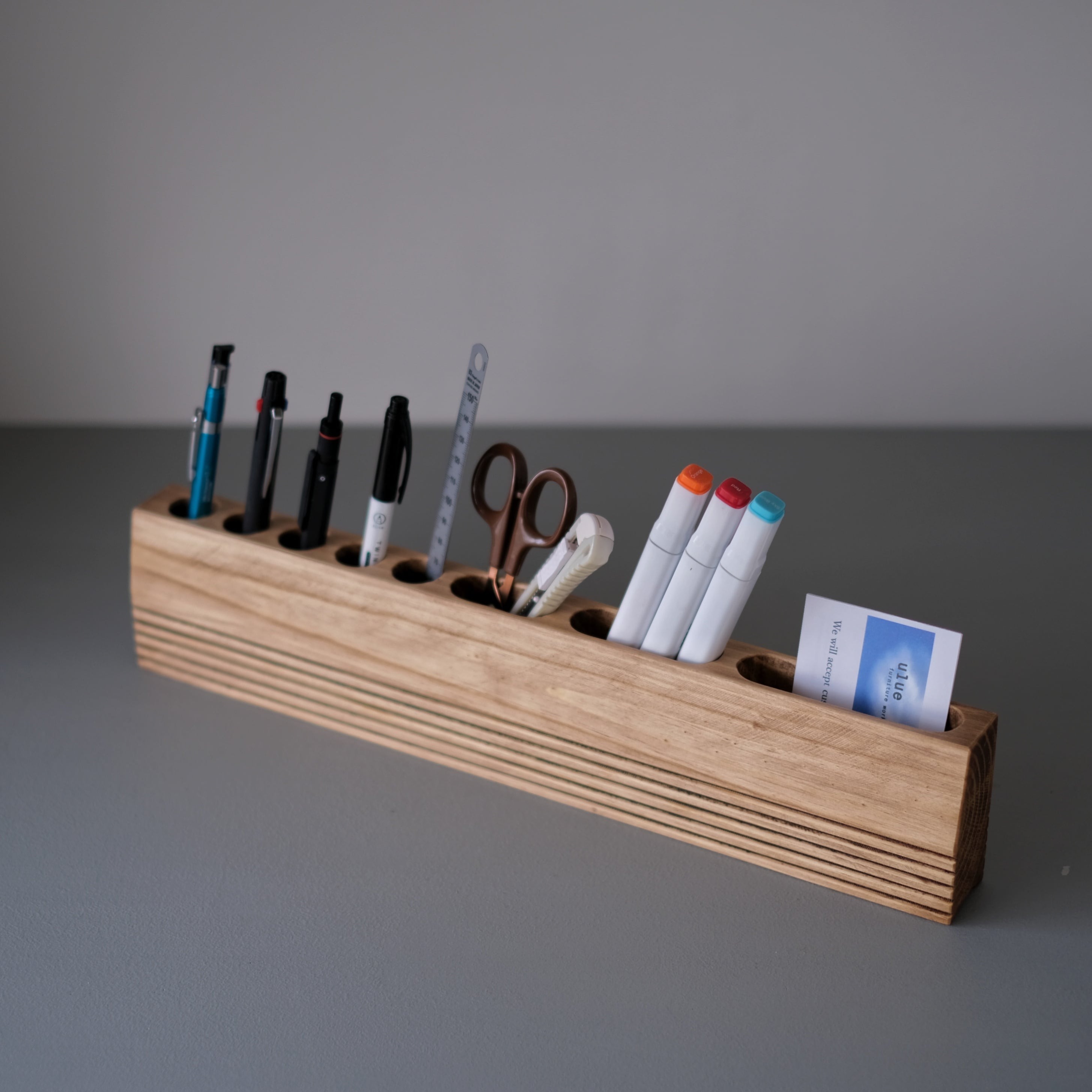 複数の丸穴、サイズの異なる長穴が設けられていますので、ペンだけでなく、ハサミや定規などの文具、携帯電話などもきれいに整理整頓することができます。