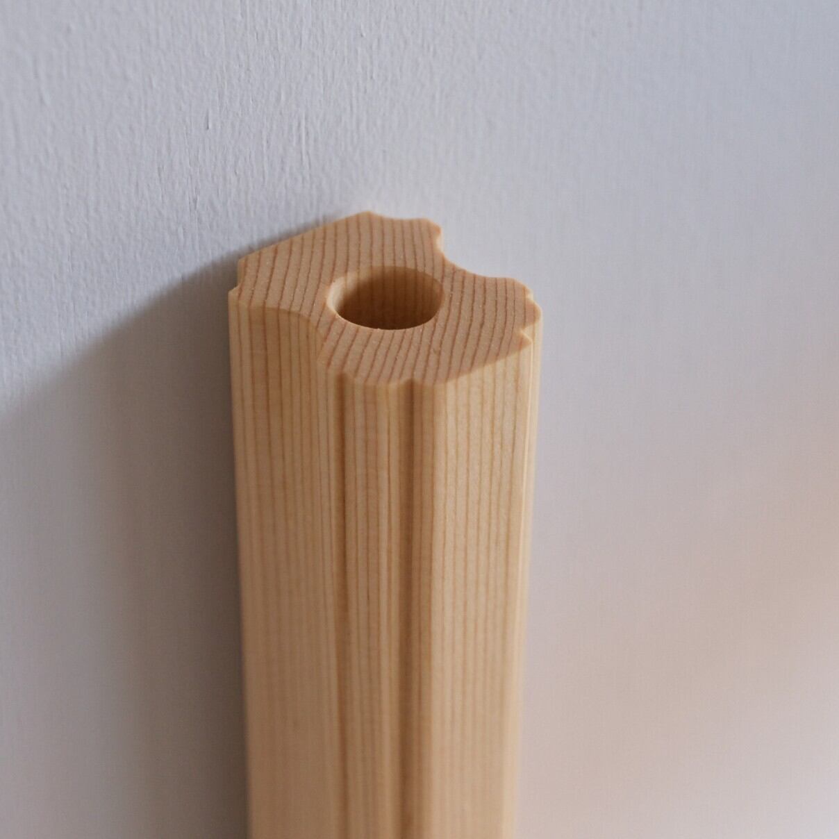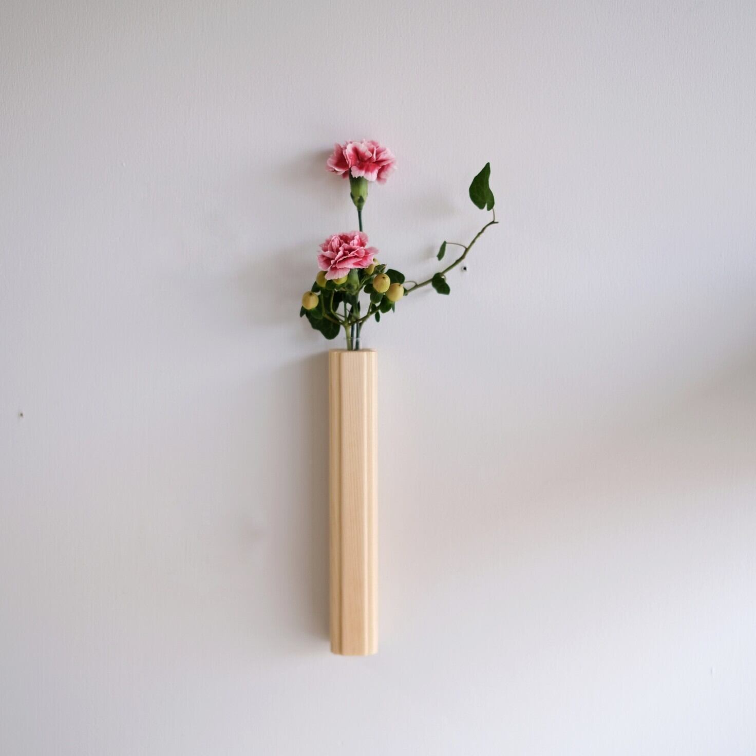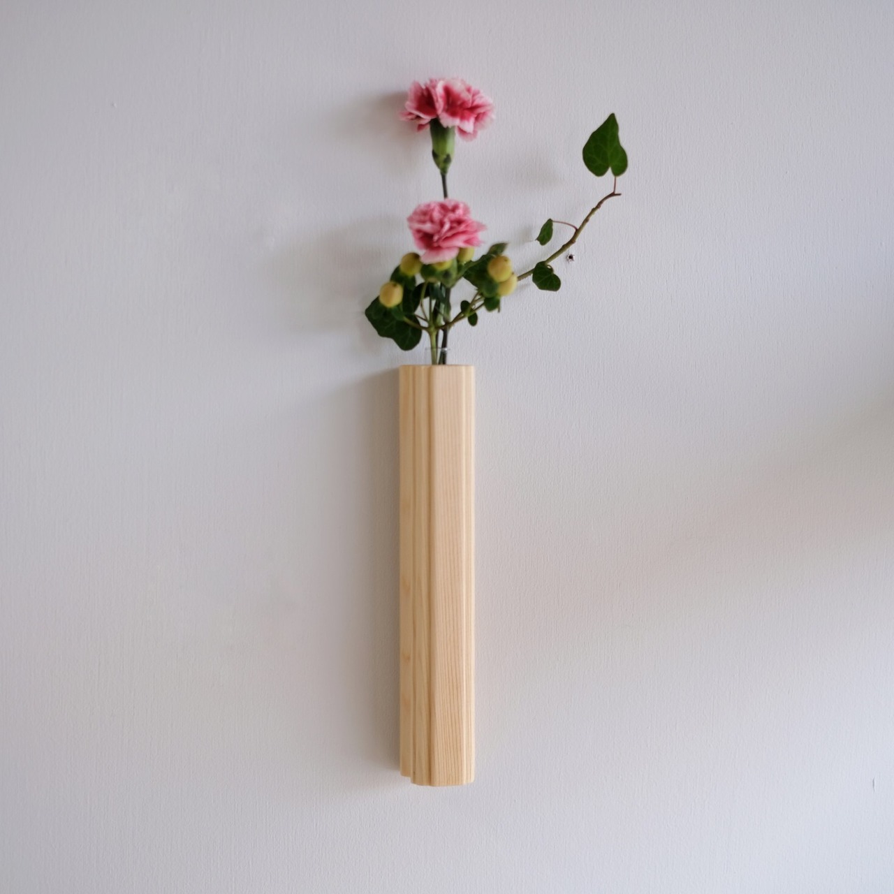 溝を彫り込んだデザインが特徴的な壁掛け一輪挿しです。
